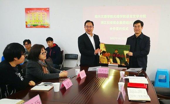 在挂牌仪式上,浙报集团绍兴分社周智敏社长表示,浙江日报绍兴分社目前有浙里绍兴微信公众号,浙江新闻客户端绍兴频道,浙江在线绍兴频道等移动、pc平台,很愿意为学生文理学院元培学院学生提供实践平台。梁瑜书记表示双方要加强合作,为培养满足社会发展需求的传媒应用型人才共同努力。